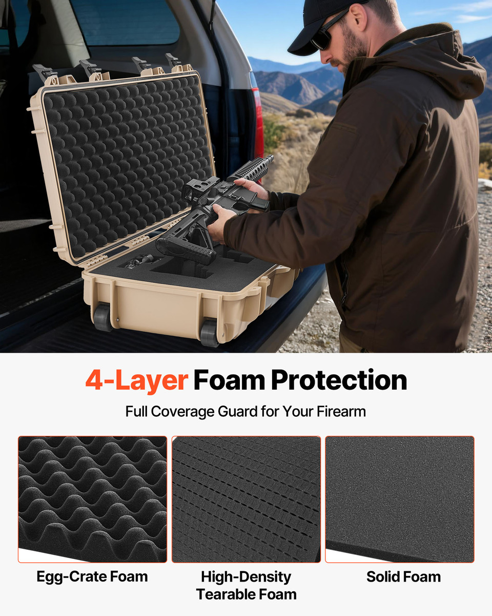 - VEVOR Hard Rifle Case, 4 Layers Pre-cut Foams, 38.5" Gun Storage & Wheels, Khaki
