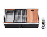 Heavy-Duty Stainless Steel: This kitchen sink workstation is made from high-quality 304 stainless steel, ensuring durability, rust resistance, and easy cleaning. However, avoid sharp objects to prevent surface scratches. The upgraded panel thickness is 3 mm, 50% thicker than most standard kitchen sinks. It features R10 rounded corners for easy cleaning and a modern aesthetic.