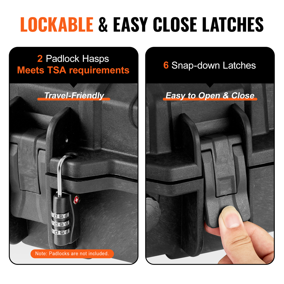 Secure Travel-Friendly: Our hard rifle case meets the TSA requirements and features 2 padlocks to secure your rifles, preventing unauthorized access to your firearm. Additionally, the snap-down latches are not only easy to operate but also ensure secure closure of the gun case.