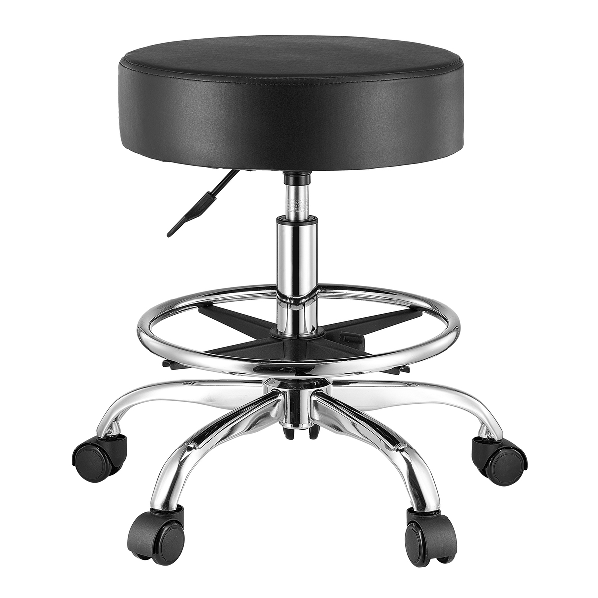 - VEVOR Rolling Stool with Foot Rest, 450 LBS Round Stool Chair, PU Leather, Black