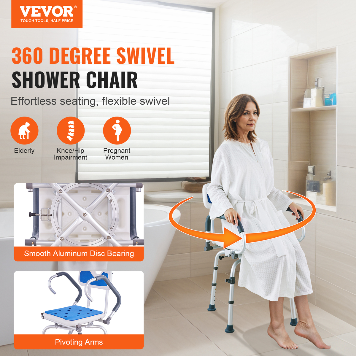 - VEVOR Shower Chair, 360° Swivel, Adjustable Pivoting Arms Non-Slip 400LBS