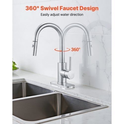 - VEVOR Single Handle Sink Faucet Brushed Nickel Pull-Down Kitchen Sink Faucet