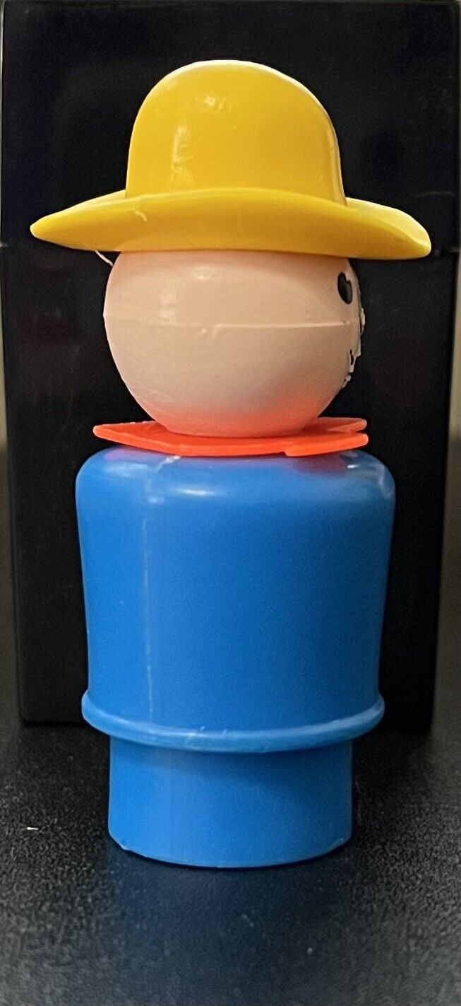 VINTAGE Fisher Price Little People Farmer with blue body, red bandana and yellow hat. Normal wear and tear.