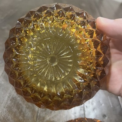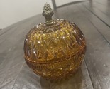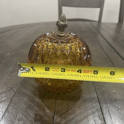 - VINTAGE Indiana Glass Amber Candy Dish w/Lid & Metal Acorn Finial Mount Vernon