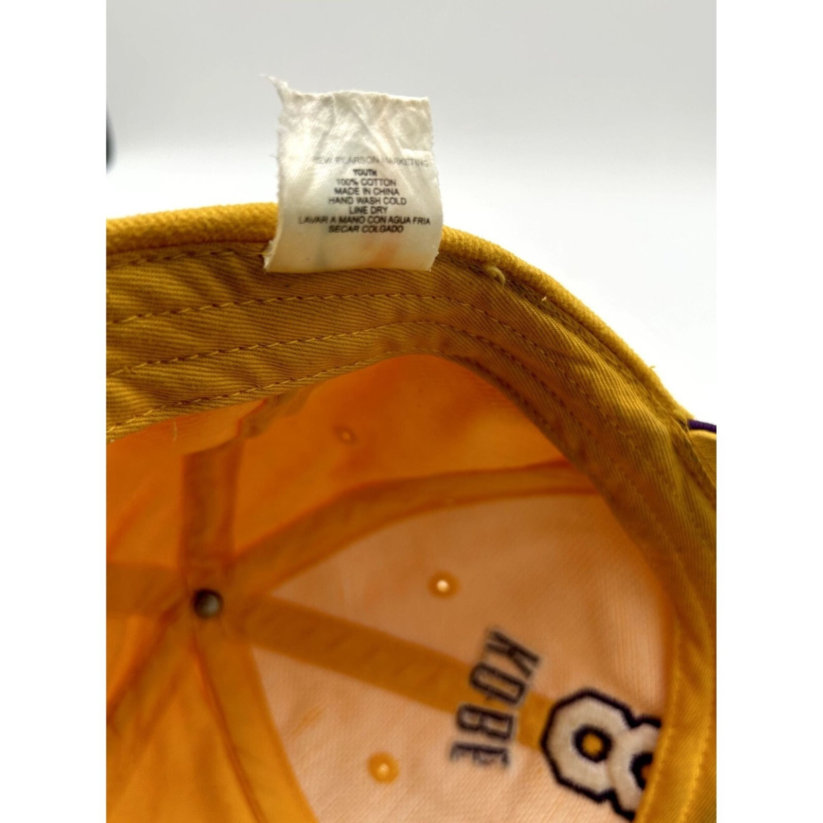 VINTAGE Drew Pearson NBA Kobe Bryant Los Angeles Lakers Hat Cap Strap Back Yellow Gold Purple Basketball Youth Adjustable