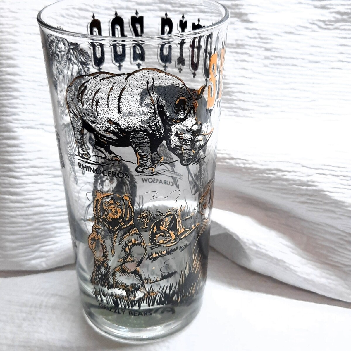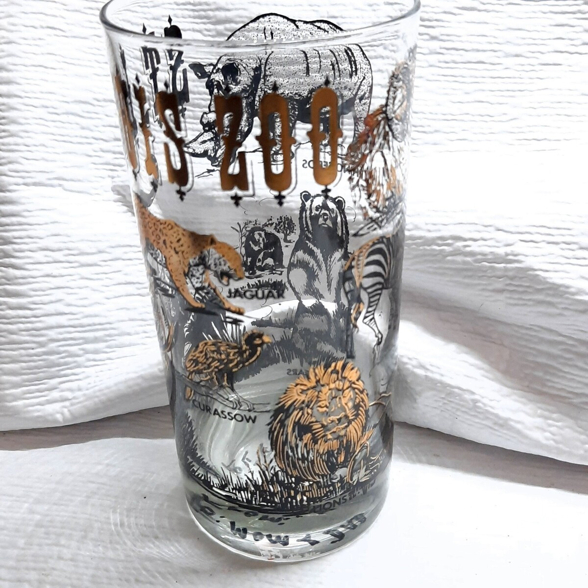 - VINTAGE St. Louis Zoo drinking glass tumbler cup gold black MCM animals jaguar