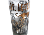 VINTAGE St. Louis Zoo drinking glass tumbler cup gold black MCM animals jaguar