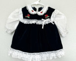 - VIntage Navy Blue Velvet Baby Girl Dress Lace Roses 18 Months Holidays USA 90's