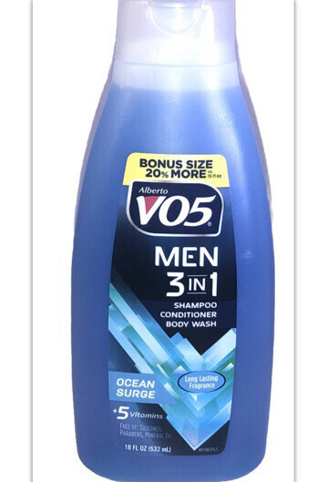 Get a surge of cleanliness and fragrance with every shower! This product presents a 3-in-1 formula that speeds up your shower process while getting you clean. Say goodbye to separate bottles for shampoo, body wash, and conditioner and save space with a single bottle that does it all. This bonus bottle contains 20% more liquid for a whopping 18-oz. Plus, the Ocean Surge scent can whisk you away to a beachside getaway every time you take a shower. Great for homes, rental properties, stocking stuffers, hotels, motels, care packages, and more. Get the freshness you deserve with VO5 Men's 3-in-1 Ocean Surge Shower Gel!