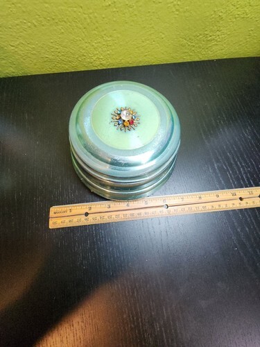 VTG 1940s Blue Footed Aluminum Windup Musical Powder Puff Box Plays Night & Day