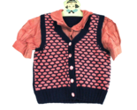 VTG 1940s Girls Hand Knit Sweater Vest Blouse Pink Blue Pattern WWII Sz 8
