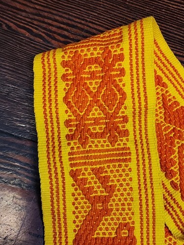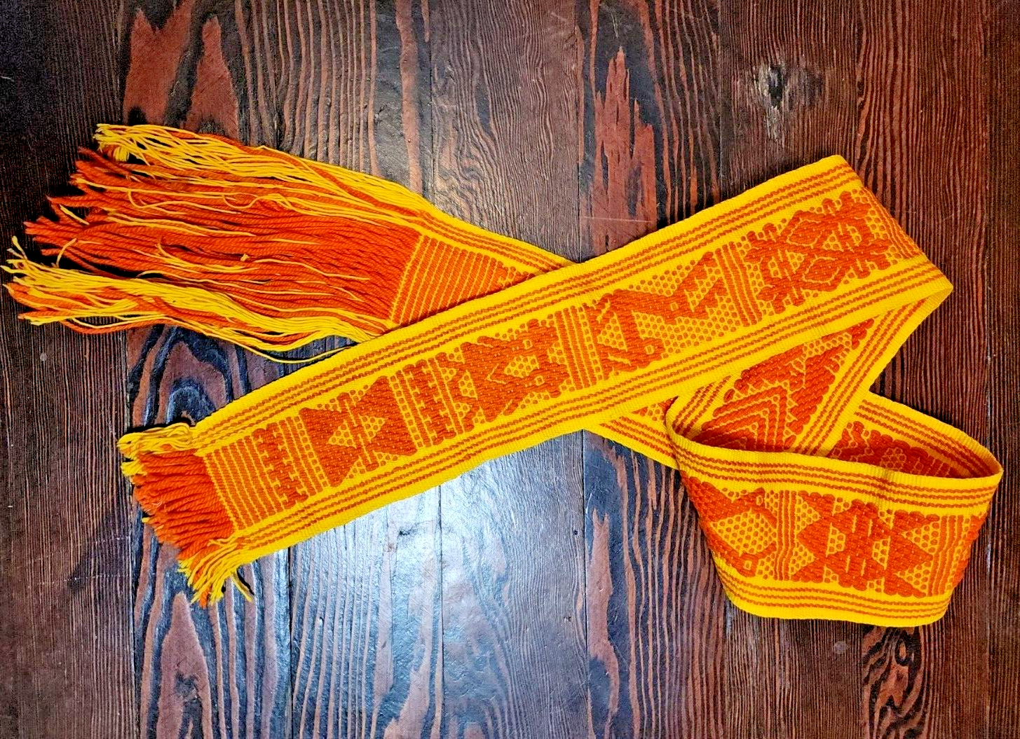 VTG 1960s Peruvian Hand-Woven Shaman Chumpi Belt Trim Waist Cinchi Orange Red