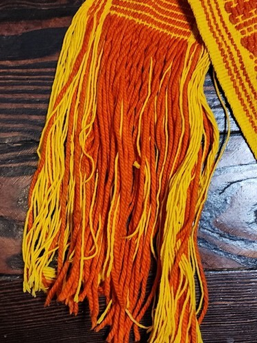 This was purchased during the late 60s on a College trip to Peru -- it has Beautiful orange and red colors