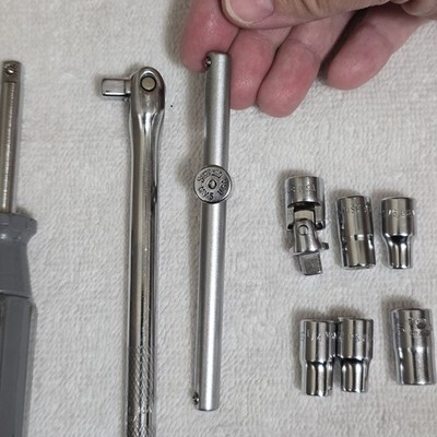 All pieces are Snap-on 6-point sockets and handles from the 1960s era (with one later replacement noted)