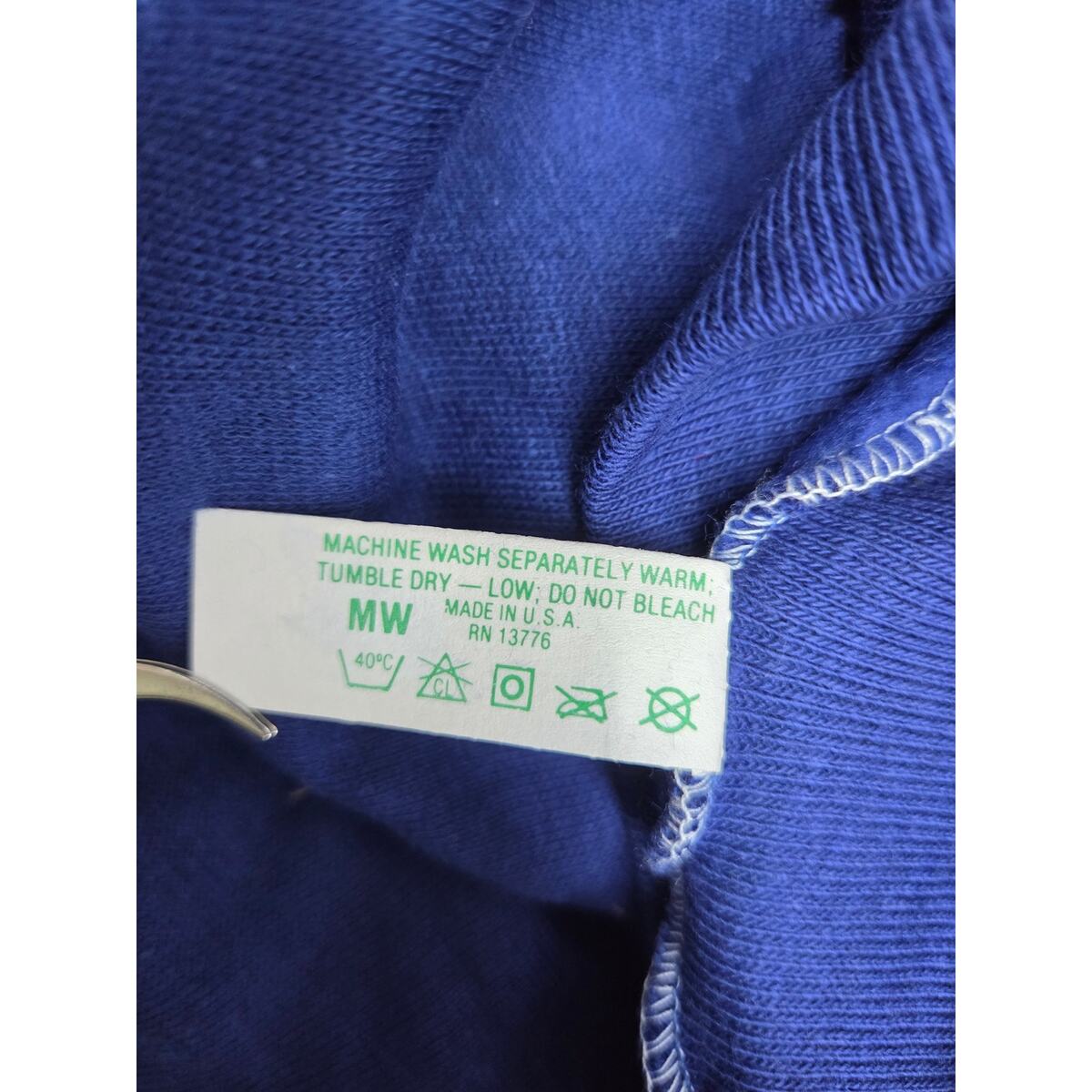 Wrangler, originally founded in 1947 in Greensboro, NC, expanded into activewear in the 1970s?80s. This cotton/Creslan blend with USA-made tag reflects durable American athletic manufacturing from that era ? the kind once sold at small-town general stores for work and play.