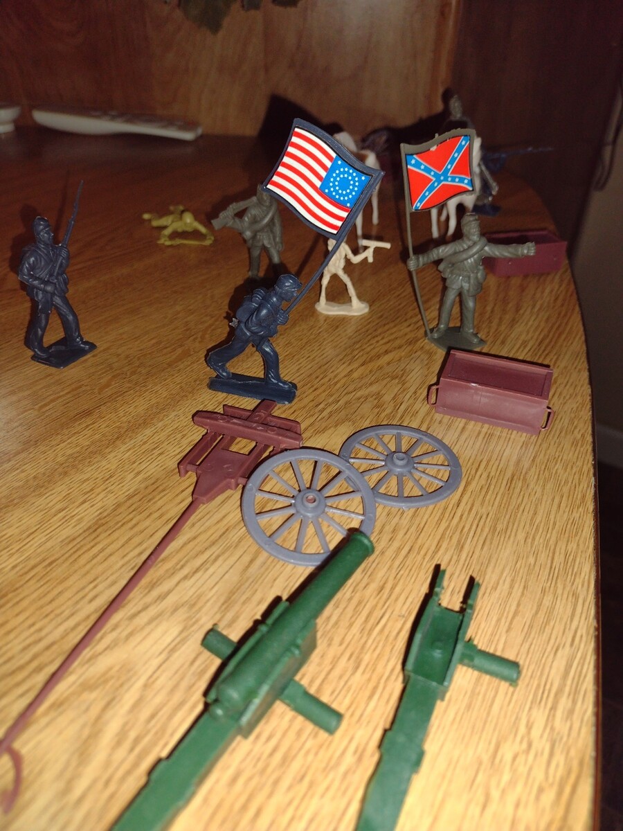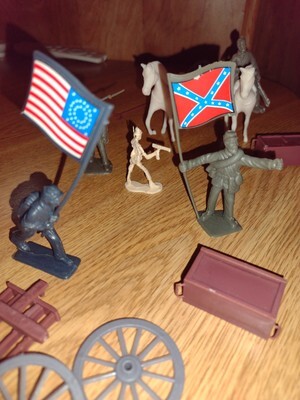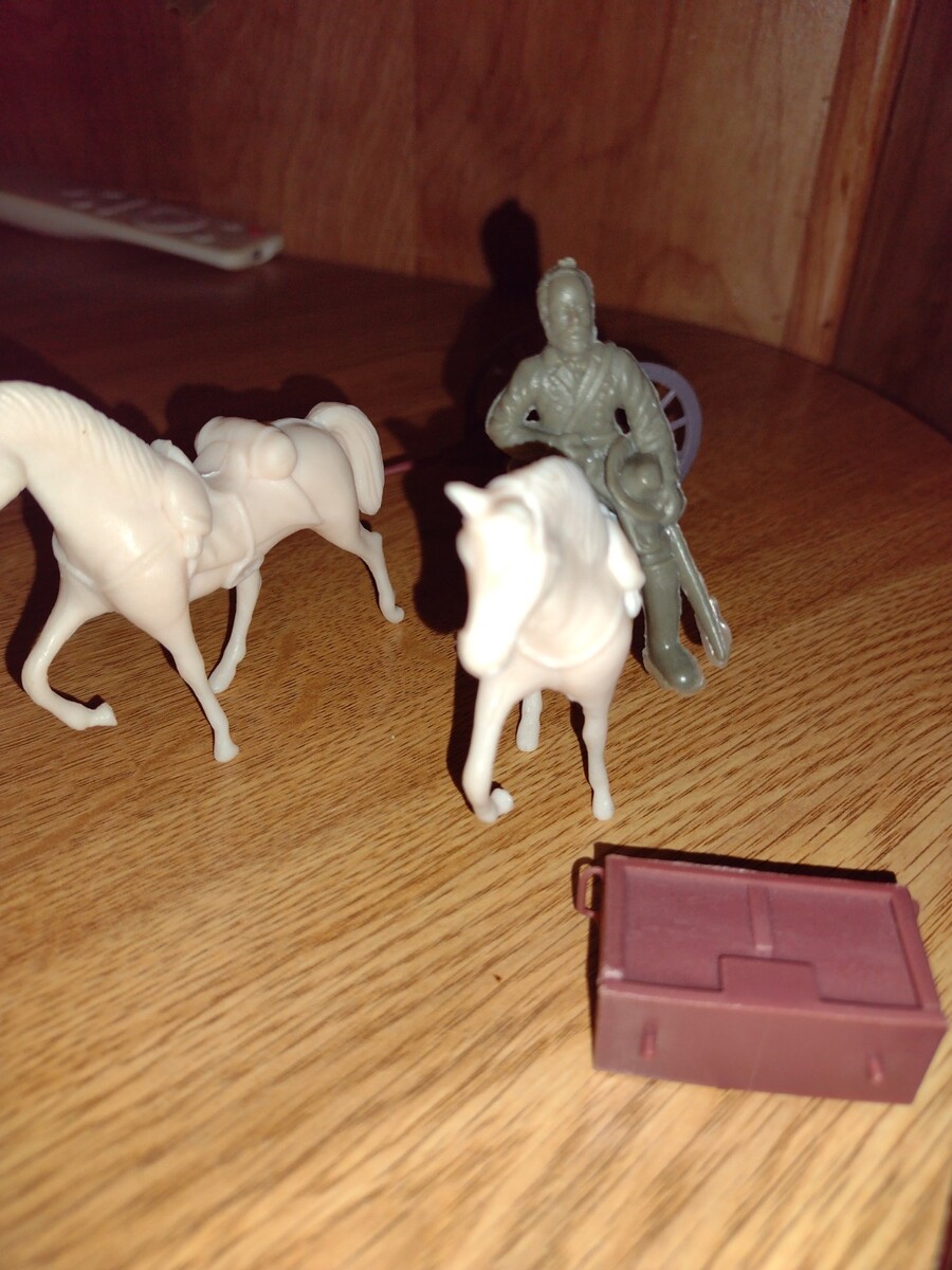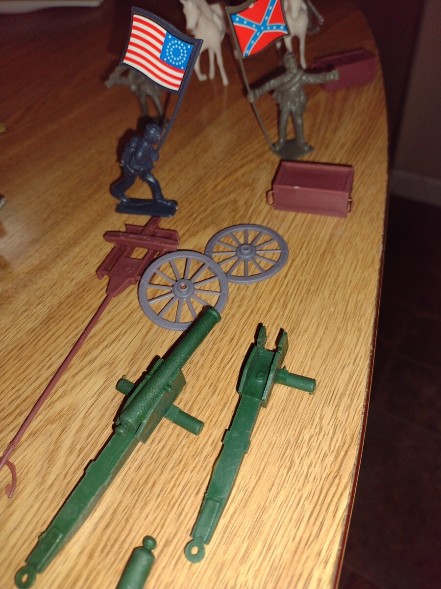 In addition , there are some other pieces included. An intact wagon, a broken wagon and a few other pieces that I'm not sure what they are. Set them up or have fun reenacting the Civil War days