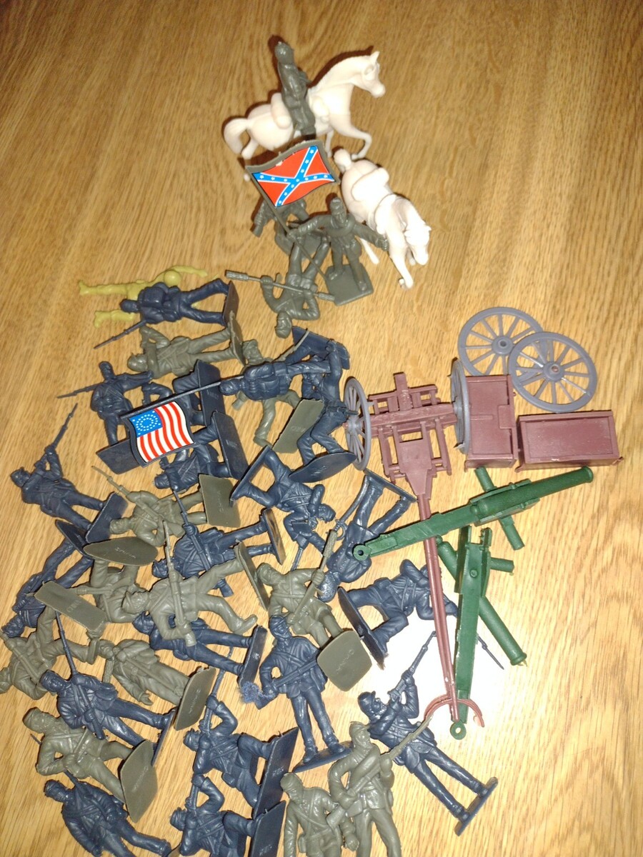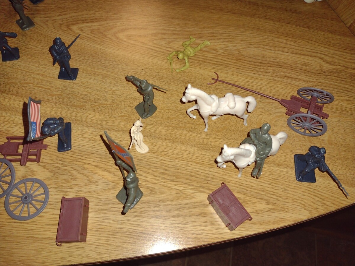- VTG 35 Plastic Civil War Toy Soldiers Army Men 2" Gettysburg Figures 2 Horses