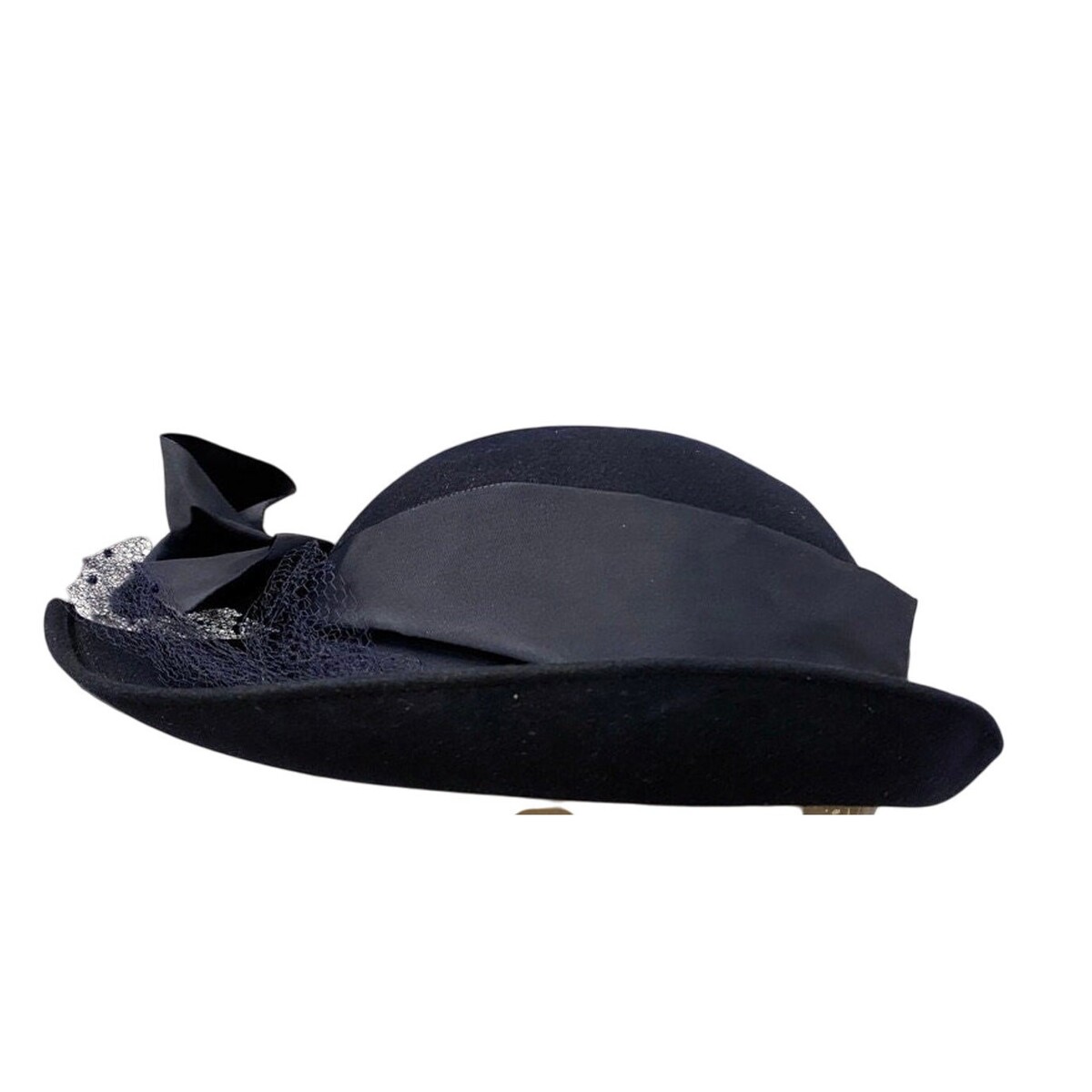 - VTG 40s Dobbs Semi-Cloche Brimmed Felt Hat Ribbon Netting Flattery Label 7 1/4