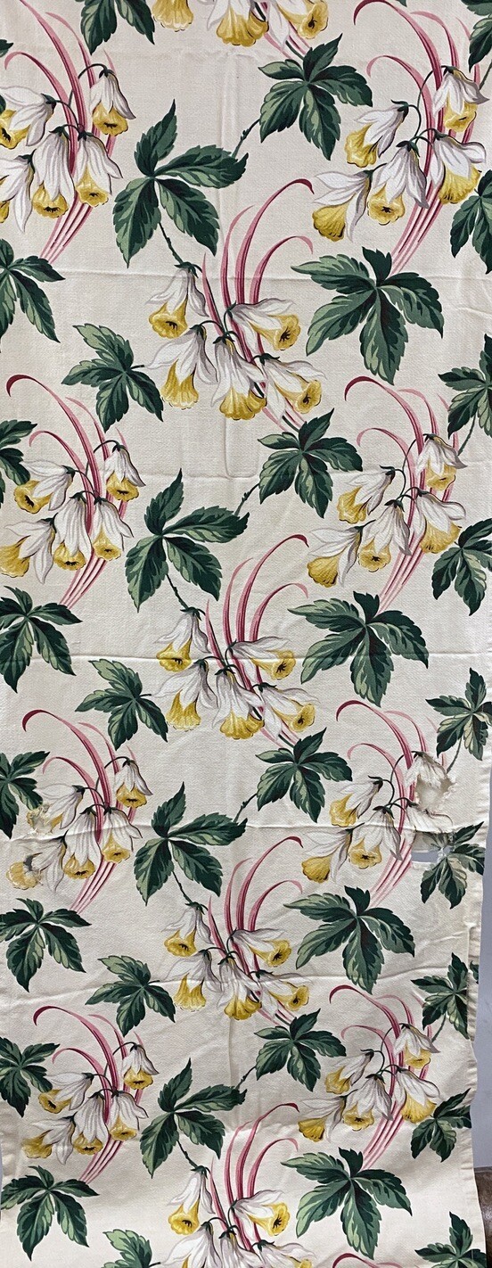 VTG 40s Fabric BARKCLOTH Floral drapery curtains 4 Panels- 172" x 32" Damaged