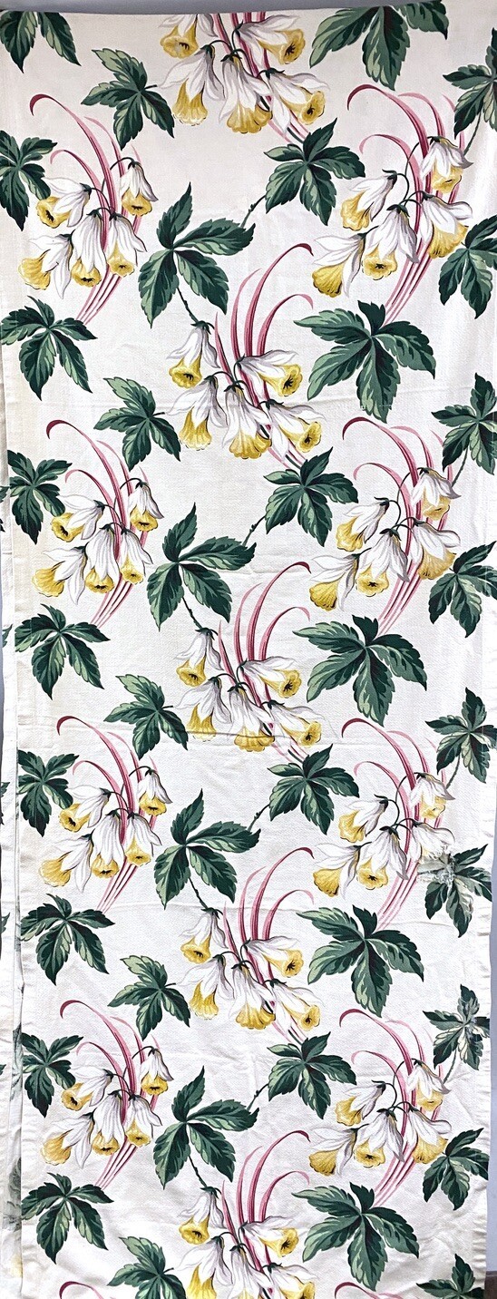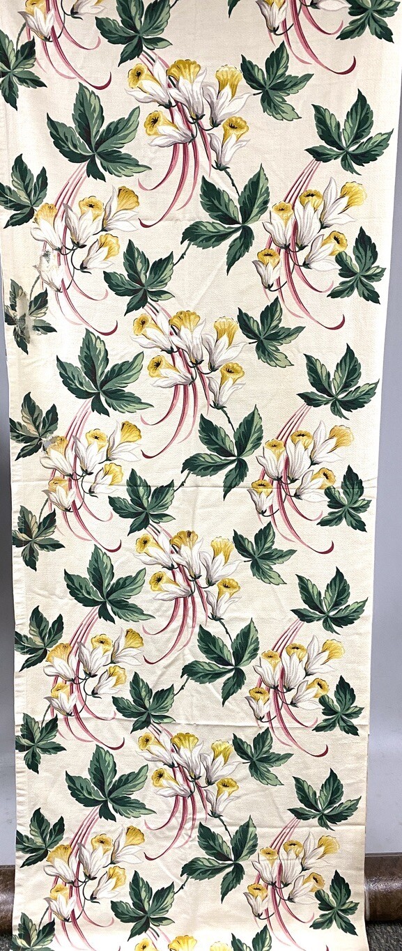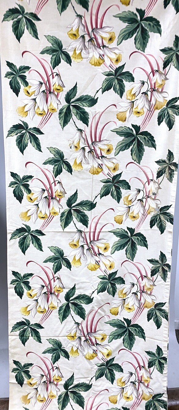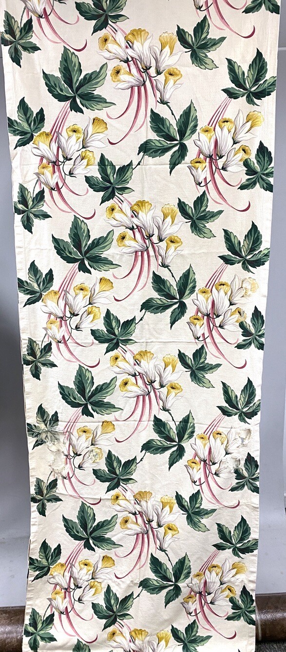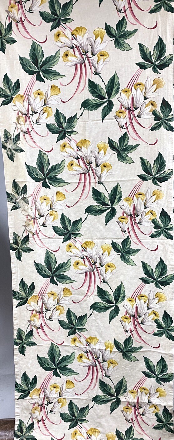 Vintage 1940s-50s Fabric BARKCLOTH gorgeous floral drapery curtains 4 Panels 172" x 32" Damaged in spots on edges only.