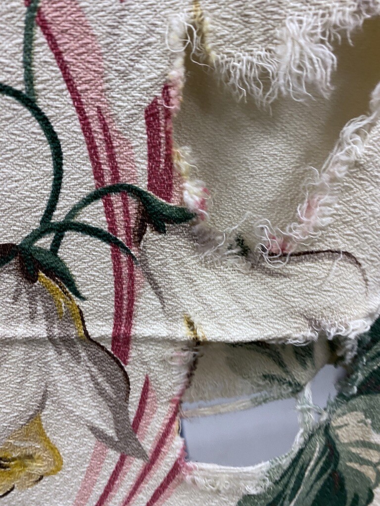 - VTG 40s Fabric BARKCLOTH Floral drapery curtains 4 Panels- 172" x 32" Damaged