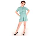 Ideal on bust 33?37?, waist 25?27?. Works well on heights 5?2"?5?7". Shorts have true mid-century cut: high rise, modest leg opening. Blouse is lightly structured without darts.