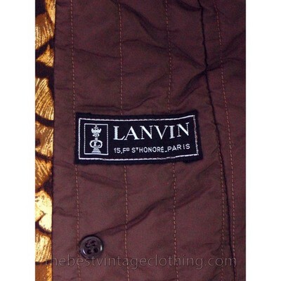 Jeanne Lanvin, one of Paris?s oldest couture houses (founded 1889), was famed for its artistic textiles and sophisticated tailoring. This late 1960s?early 1970s trench exemplifies Lanvin?s transition into bold, wearable art ? featuring a meticulously printed feather motif on sturdy cotton canvas, leather knot buttons, and a quilted nylon lining. Rarely seen outside archives or museum collections, this piece is likely a limited atelier production.