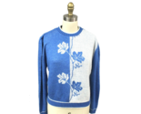 VTG 70s Blue White Intarsia Floral Puff Sleeve Sweater Women Sz L