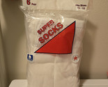 New in Taped Package Unbranded Vintage Over The Calf Tube Socks "Super Socks" 6 Pairs - Fits Size 10 - 13. Cotton / Nylon Blend. Made in USA.