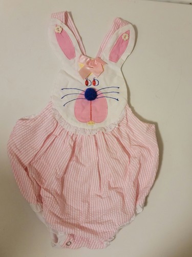 - VTG 80s Good Lads Pink Bubble Romper Overalls Bunny Rabbit Infant Girls 18 mo.
