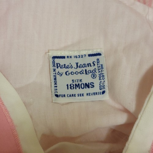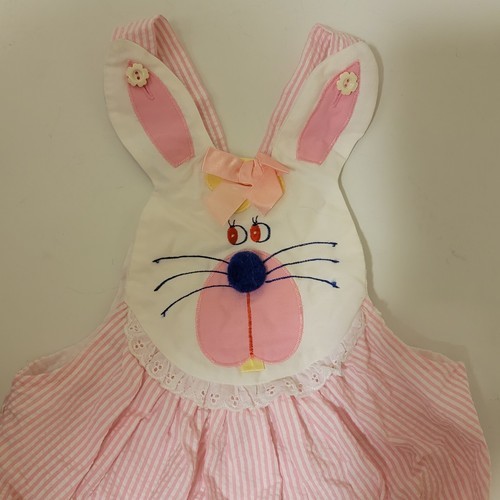 Absolutely adorable Vintage 80s Pete's Jeans by Good Lads Pink White Striped Bubble Romper Overalls Bunny Rabbit Infant Girls Size 18 months. Being this is 40 years old, I would bet it fits smaller like 12 months. Cotton / Polyester.