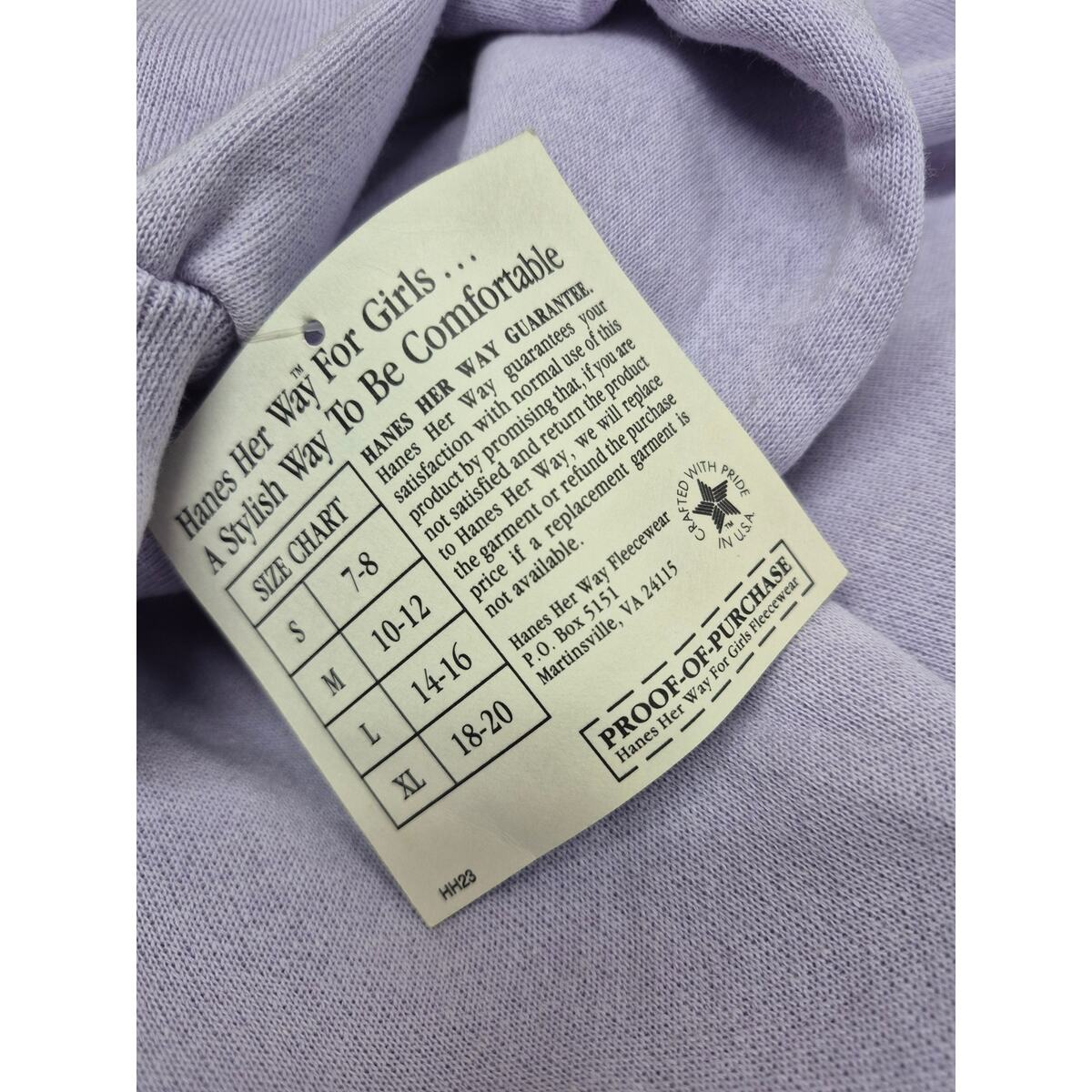 What you?ll love about this soft lilac Hanes Her Way sweatshirt is its pure 1980s charm ? cozy raglan sleeves, stretchy ribbed cuffs, and that unmistakable pastel hue that defined the era?s mall-culture comfort. Deadstock from an old general store, never worn ? the perfect softcore vintage essential.