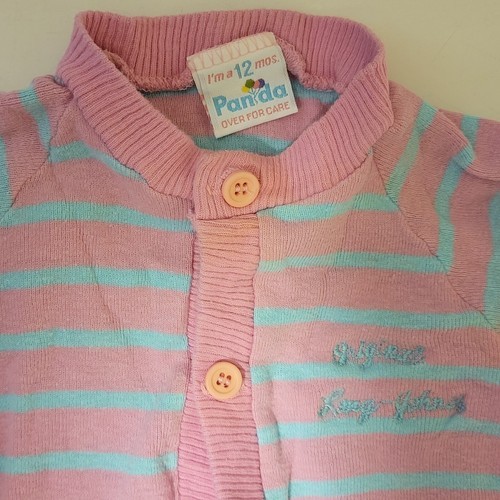 - VTG 80s Panda Original Long Johns Pink Striped Sleeper Pjs Baby Girls 12 Months