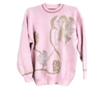 VTG 80s Pink Metallic Floral Sweater Fairy Kei Kawaii Intarsia Acrylic L