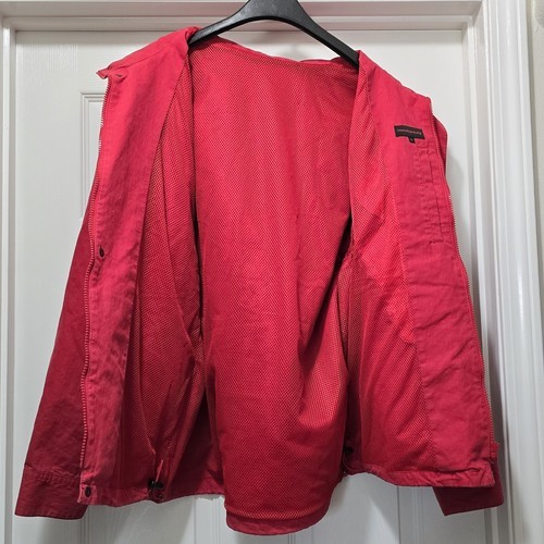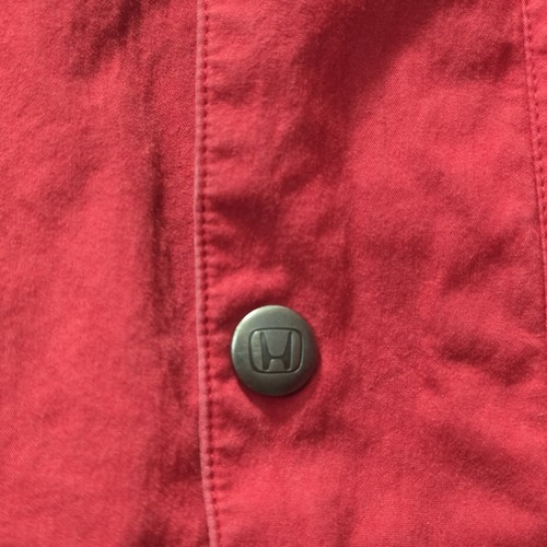 Excellent Condition Vintage 90s Honda Racing Dark Red Motorcycle Workwear Jacket with Zip Off Sleeves - Mesh lined - Metal "H" buttons - Drawstring Waist. Nice and warm. Men's Tag Size LL. Actual measurements: 45" chest, 20" under arm seam, 24" outer arm sleeve, 30.5" length.