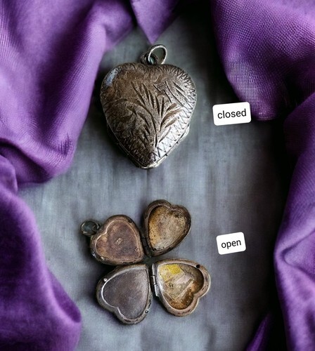 - VTG 925 Sterling Silver 4-Way Lucky In Love Clover Heart Locket Pendant WWII Era