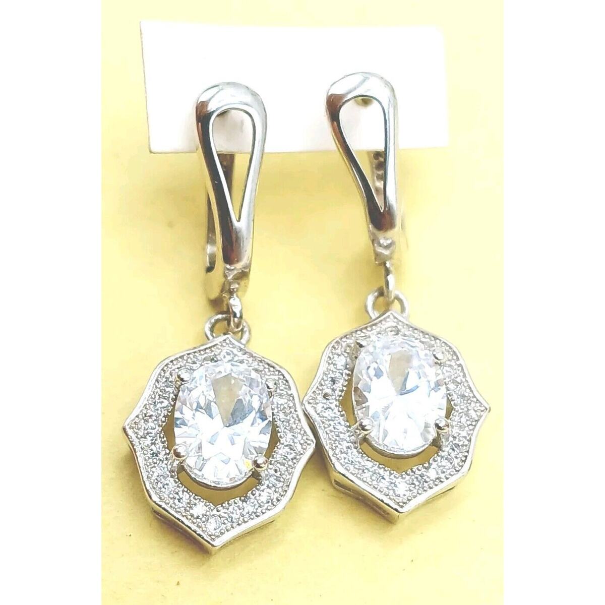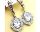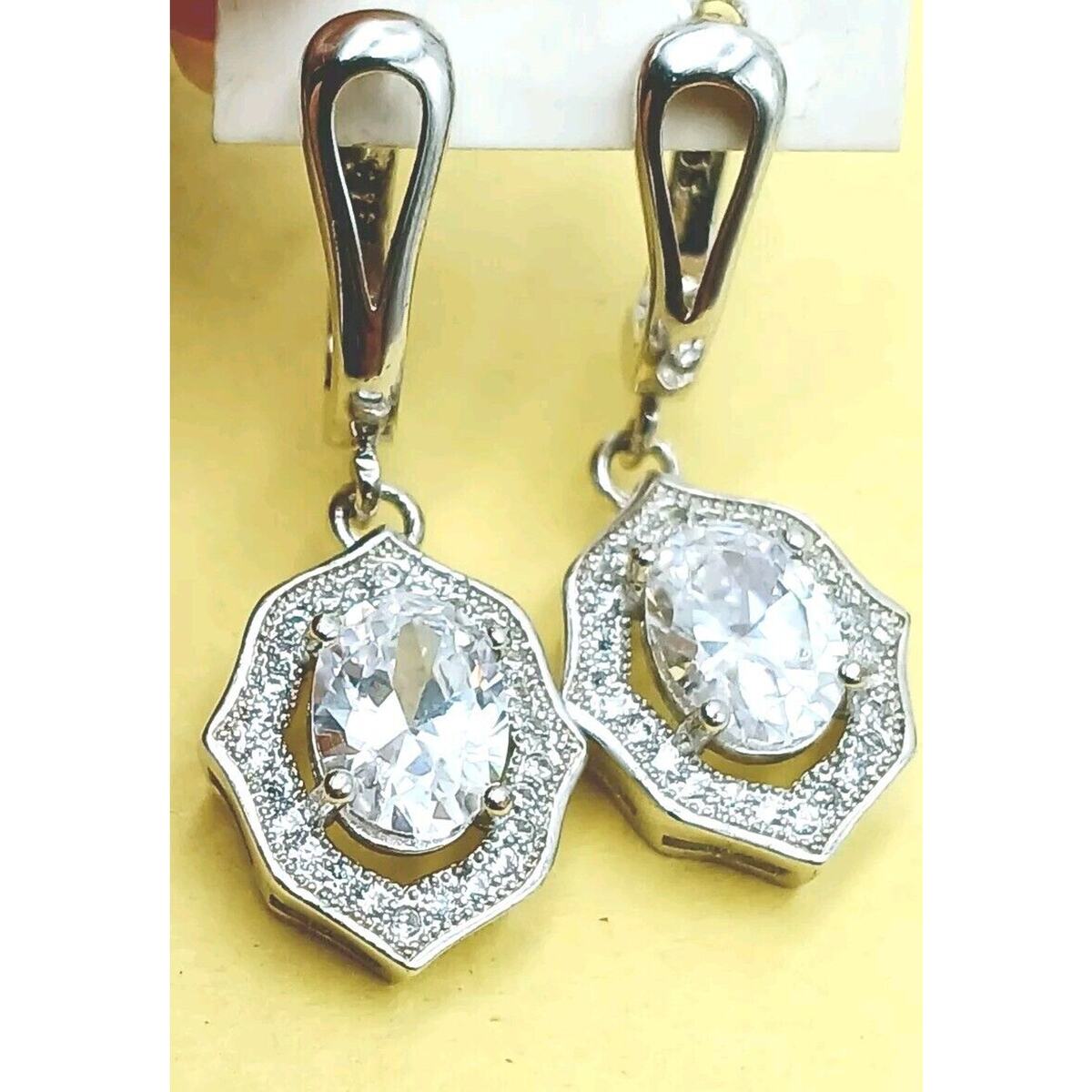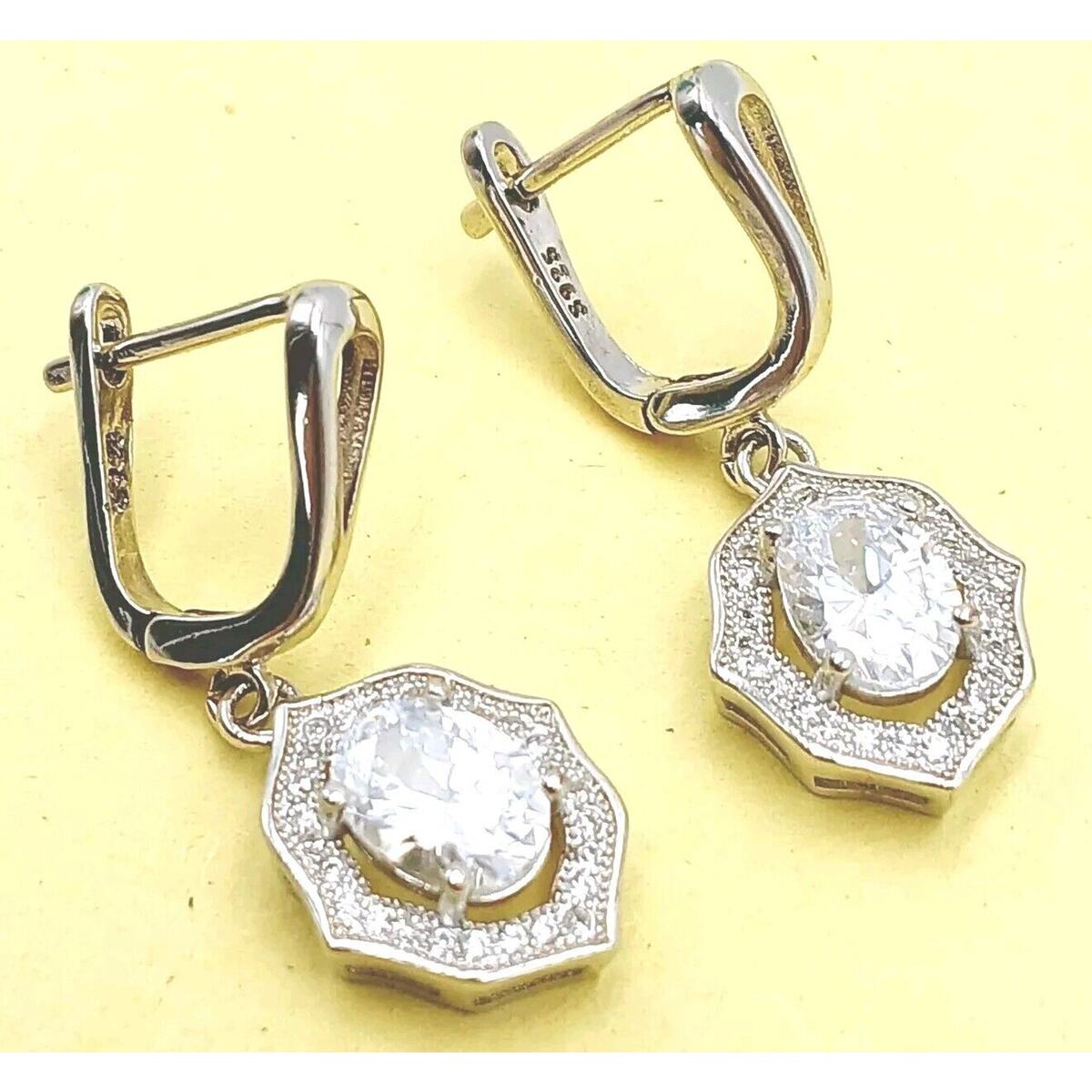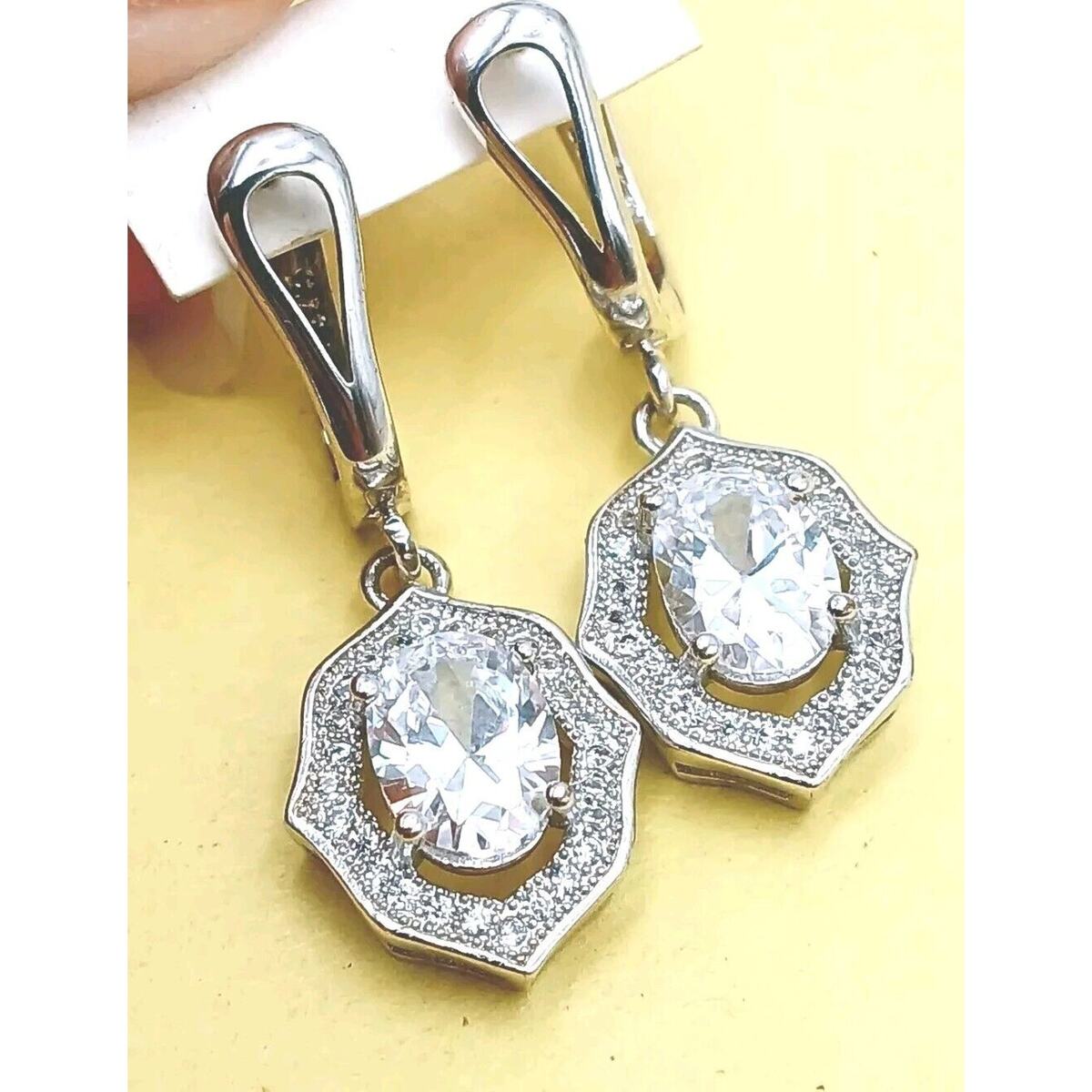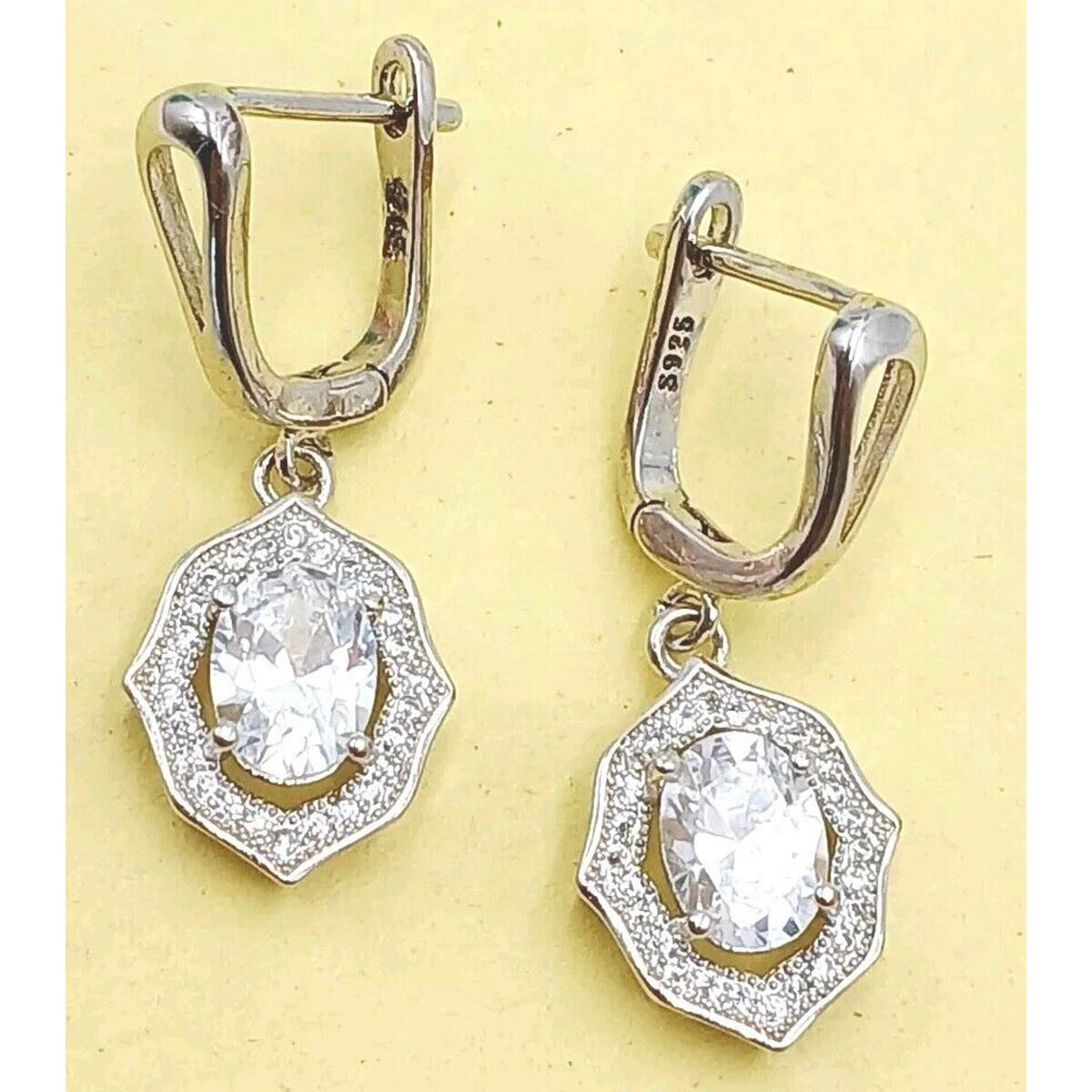 - VTG 925 Sterling Silver Dangle Drop Earrings Cushion Cut Simulated Diamond Signe