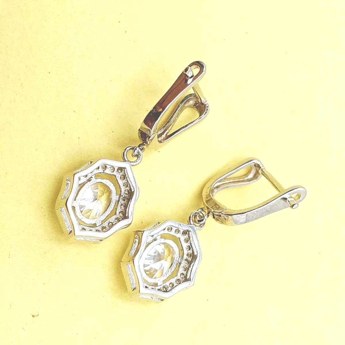 VTG 925 Sterling Silver Dangle Drop Earrings Cushion Cut Simulated Diamond Signe