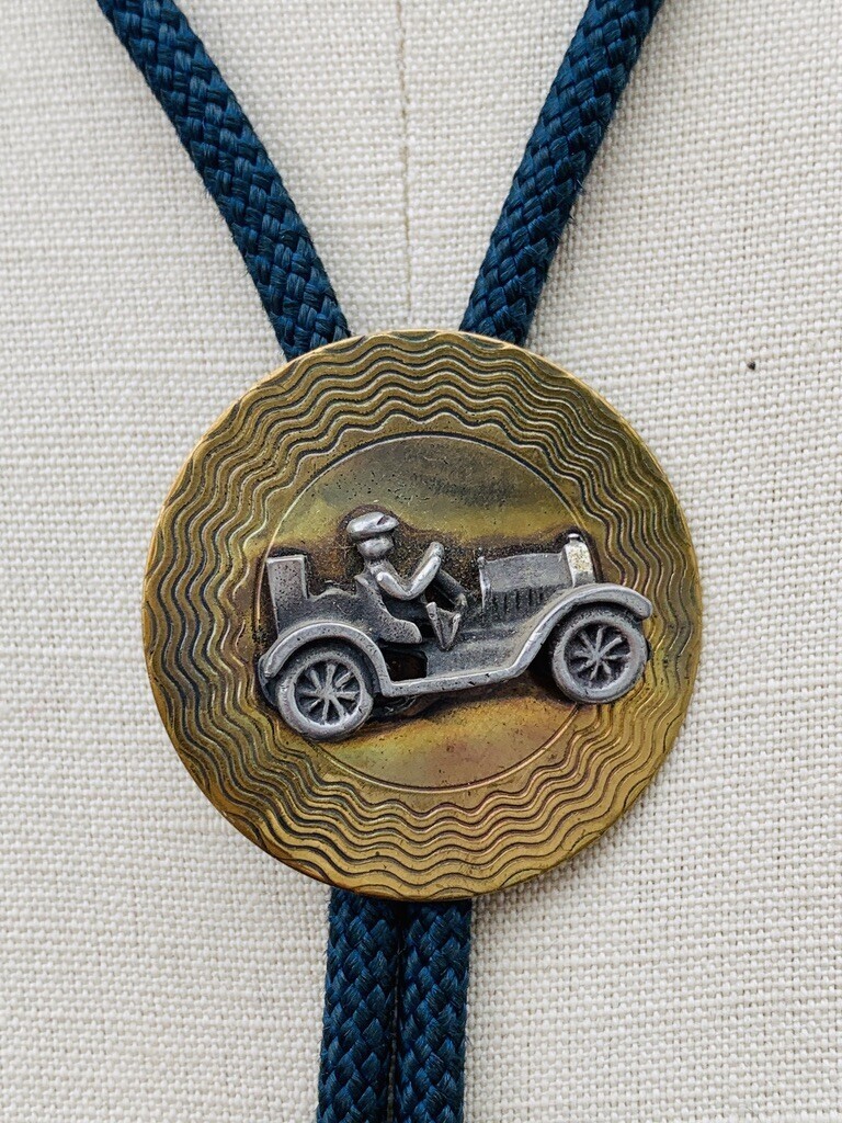 - VTG Bolo Tie Blue Nylon Cord Vintage Automobile Car Roadster Western Style 60s