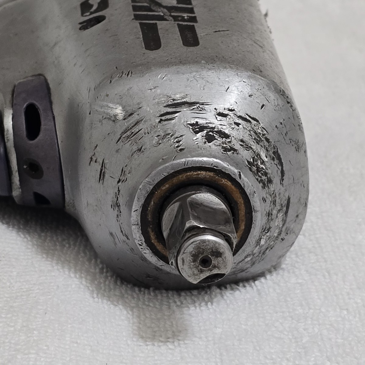 ***Tested and works good. Front housing shows visible wear, small chips, and grooves around the anvil area from prior use. Minor chip on anvil tip as shown. Tool remains dirty from previous use. Please see photos for full condition.***