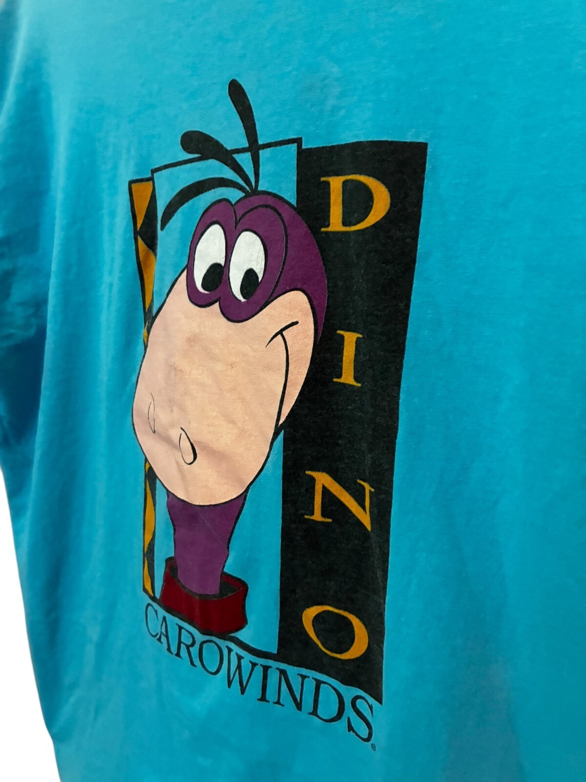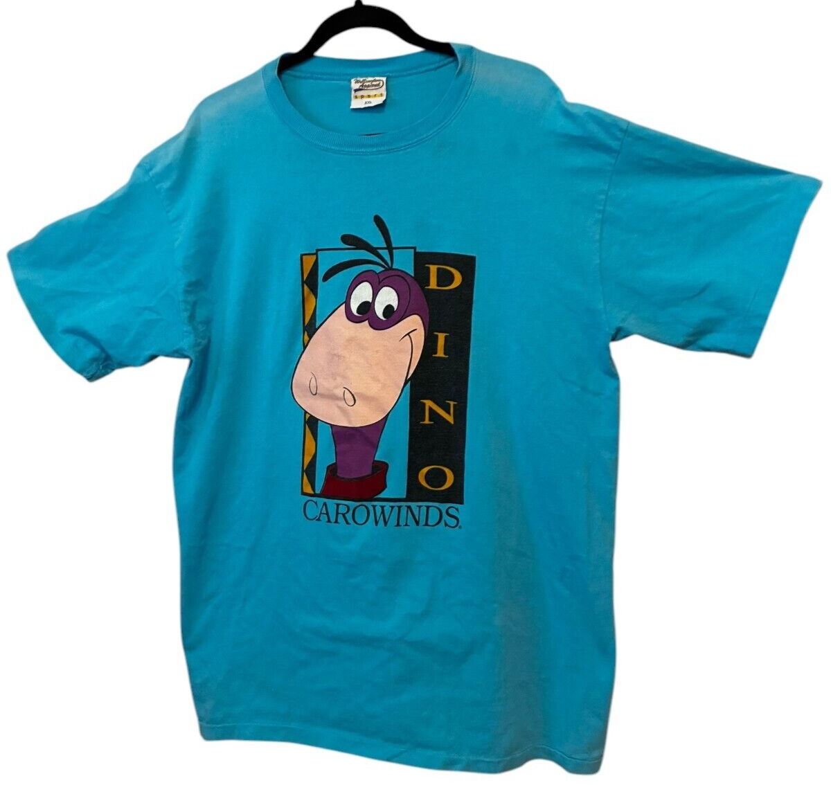 - VTG Carowinds Dino Print Single Stitch Teal Men's XXL Tee Shirt - made in USA