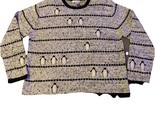 VTG Christopher & Banks Womens Sweater Gray Black Penguin Christmas Winter Lrg