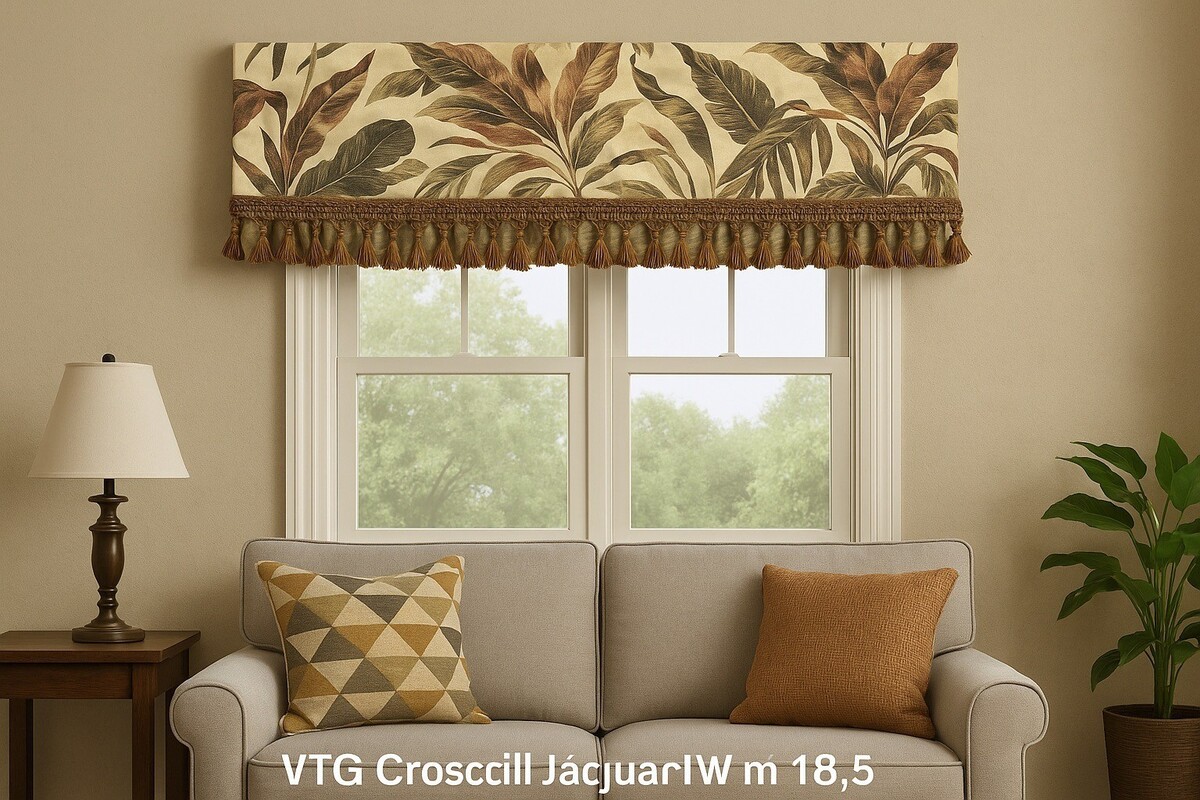 - VTG Croscill Classic Tropical Leaf Jacquard Window Valance with Tassel Trim – 87
