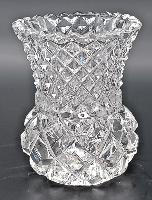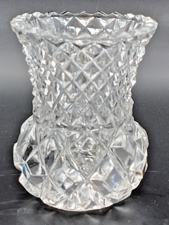 - VTG Crystal toothpick holder/Bud vase, Diamond-cut or Pineapple Pattern. 2-1/2"