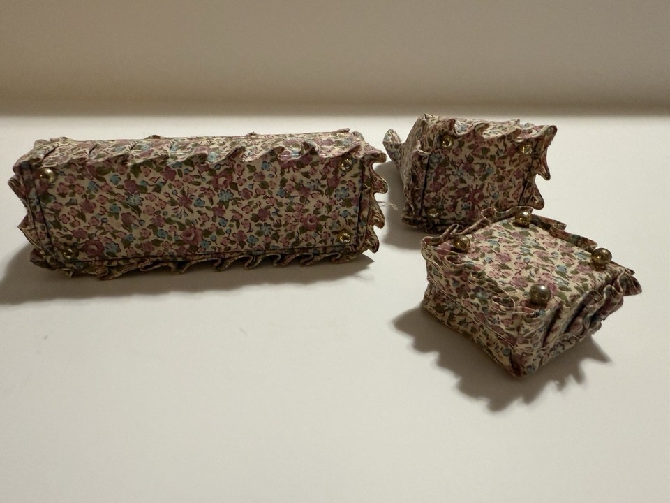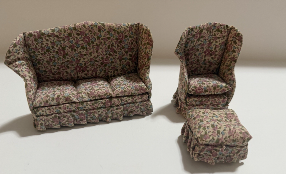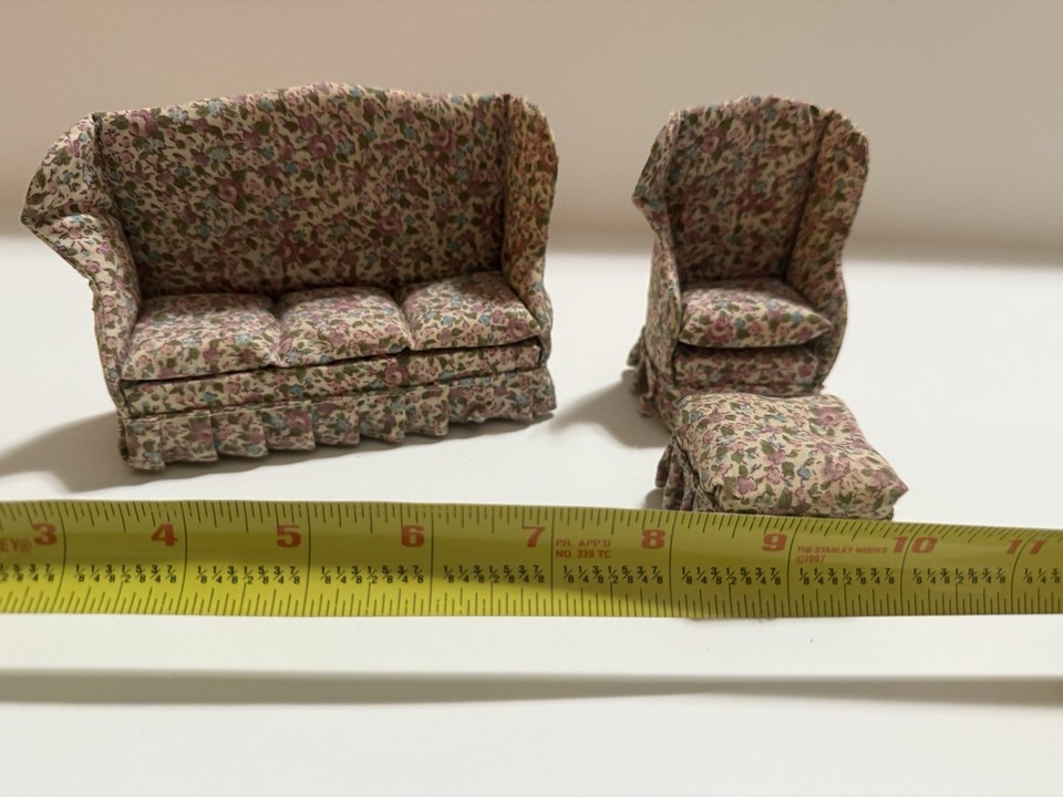 - VTG Dollhouse Long Sofa Couch & Chairs + Ottoman Upholstered Taiwan