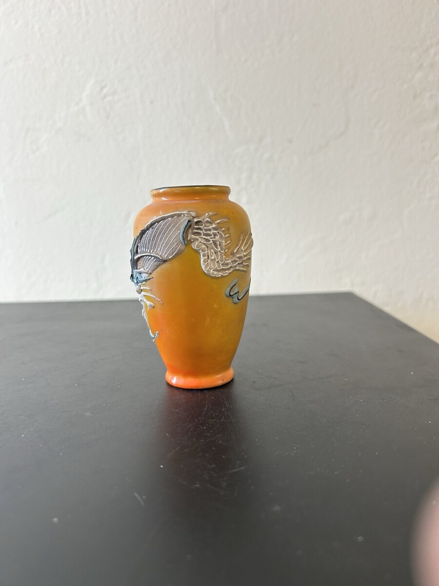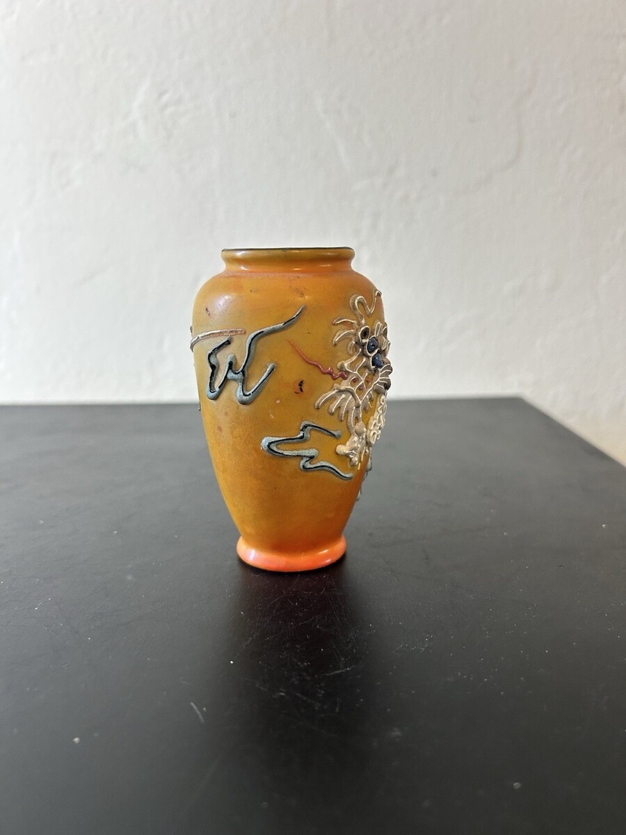 - VTG Dragon Motif Dragonware Textured Moriage Orange 3.75” Vase Japan Mini DW2