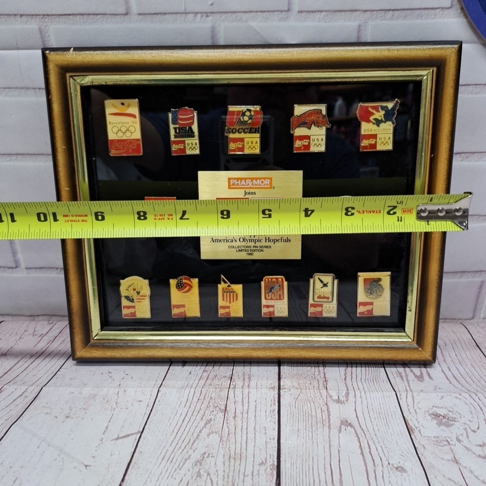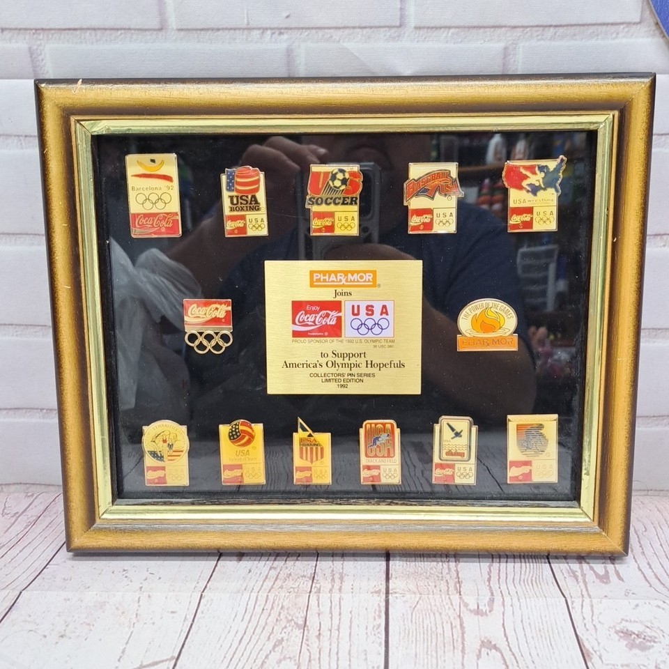- VTG Framed 13pc Olympic Coca Cola Collector' Pins Limited Edition Set 1992