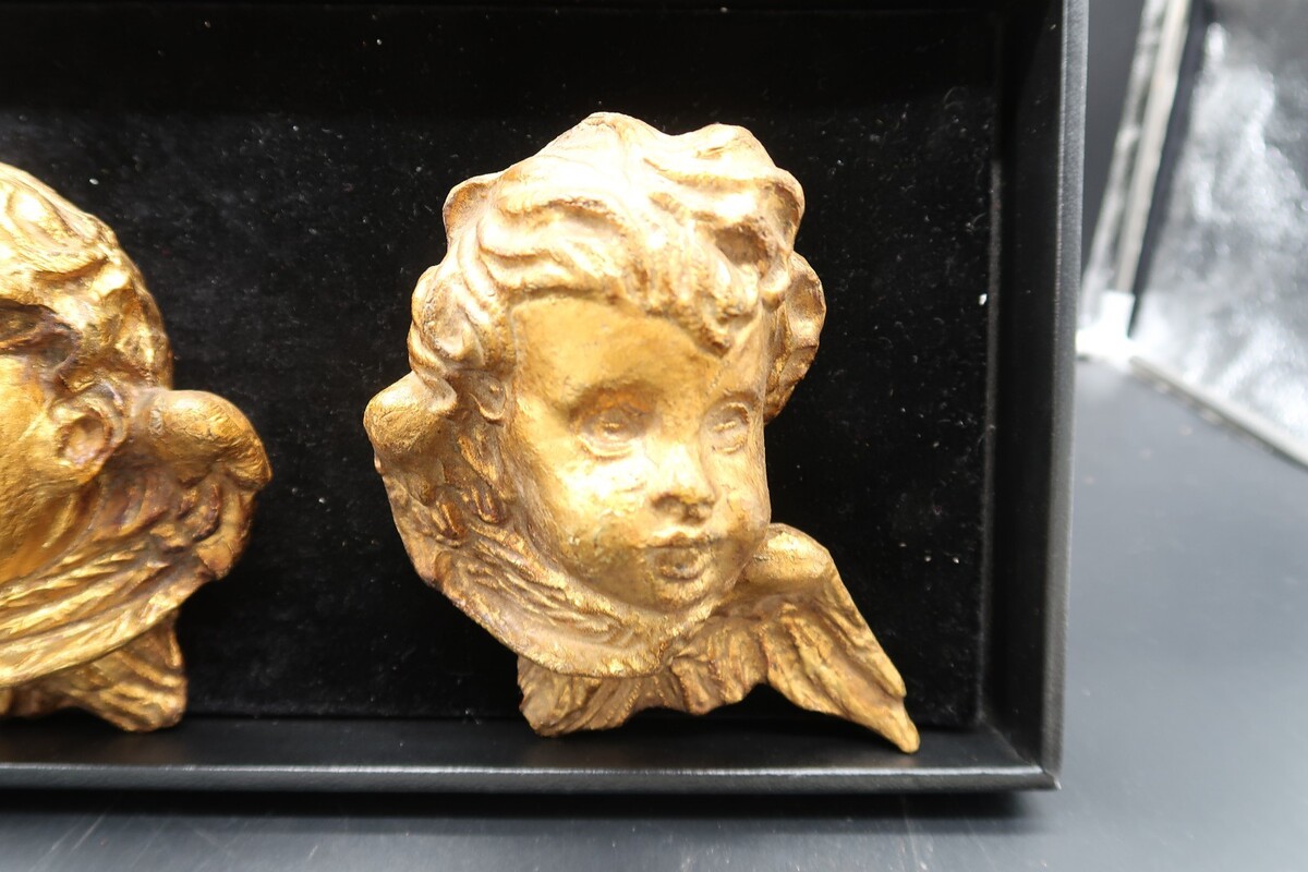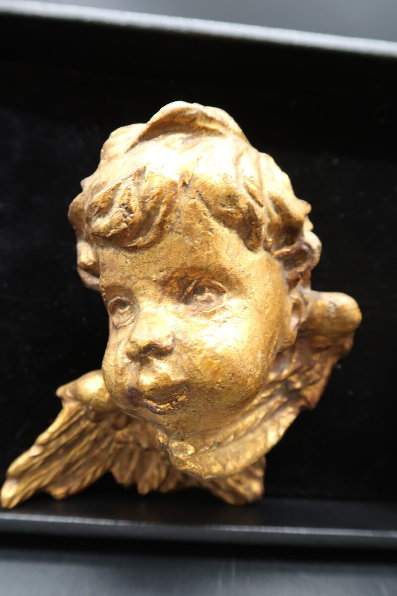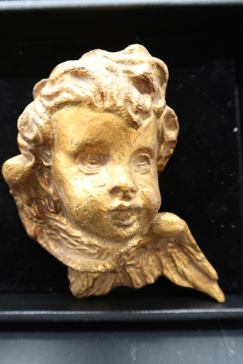 - VTG Hand Carved Cherub Angel Wall Plaques Pair Gold Gilt Putti Heads Unique