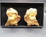 VTG Hand Carved Cherub Angel Wall Plaques Pair Gold Gilt Putti Heads Unique