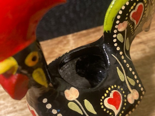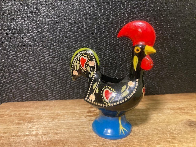 - VTG Handpainted Metal Rooster Toothpick Holder Folk Art Colorful Portugal 3”